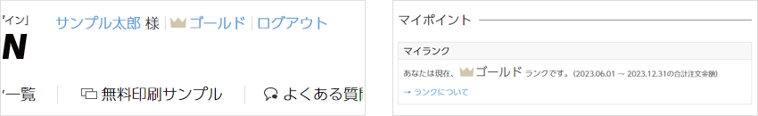 「ランク別ポイントサービス」では、過去6ケ月の注文金額に応じて会員ランクが付与され、注文時にランク別に応じたポイントが付与されます。